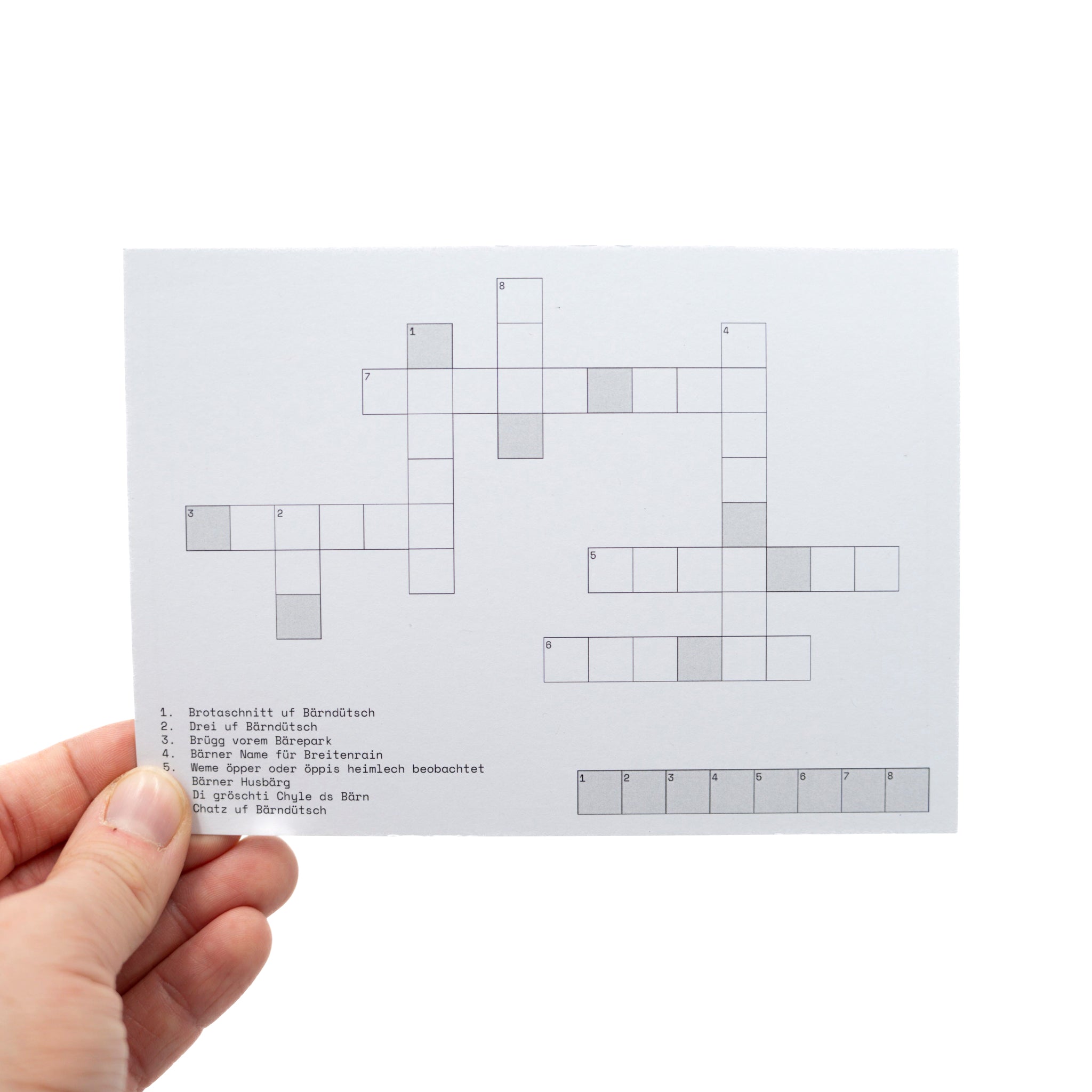 Kreuzworträtsel: | Müntschi, Gratuliere, Merci viu mau |